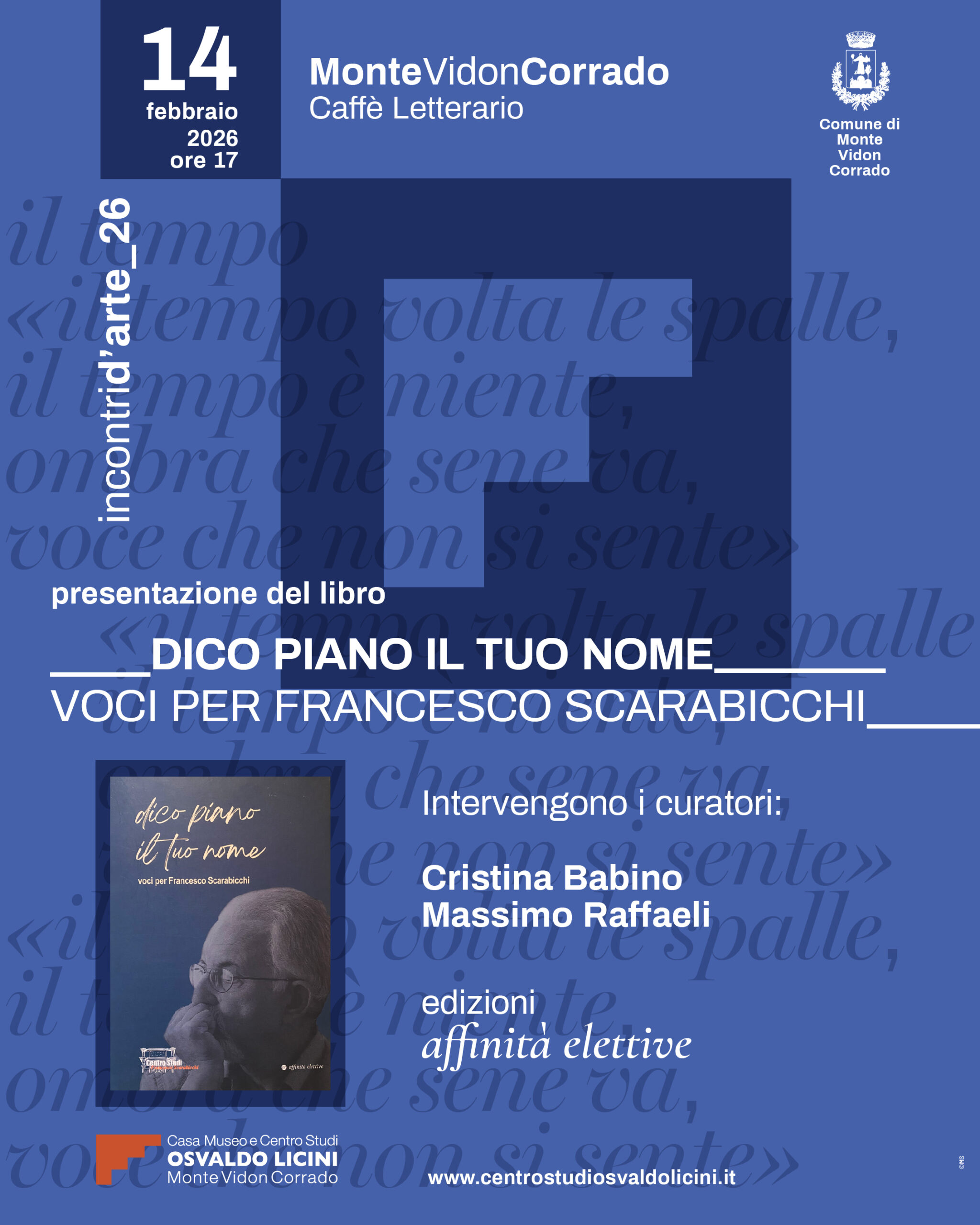 Sabato 14 febbraio alle 17, al Caffè Letterario di Monte Vidon Corrado, presentazione del libro “Dico piano il tuo nome....